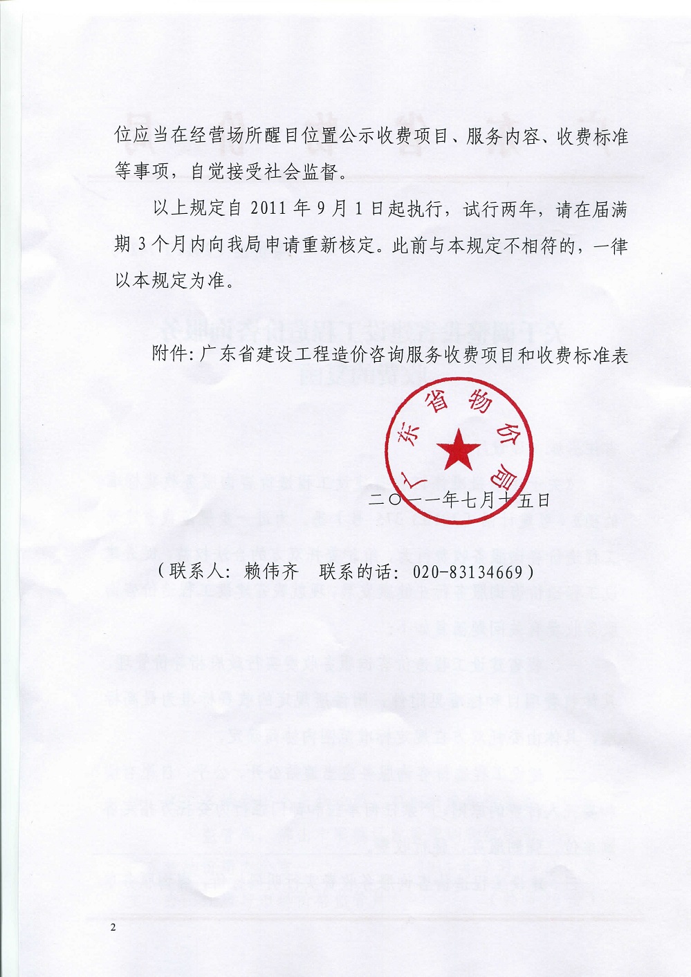 廣東省物價局關(guān)于調(diào)整我省建設(shè)工程造價咨詢服務(wù)收費(fèi)的復(fù)函 粵價函〔2011〕742號